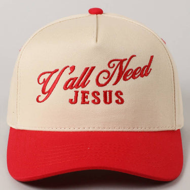 Make a statement with this eye-catching trucker hat, featuring bold "Y'all Need JESUS" embroidery on a breathable, two-tone 5-panel design. Crafted from 100% cotton canvas with a mesh back, it ensures you stay cool and comfortable all day. The adjustable snapback offers a customizable fit for most head sizes, making it the perfect accessory to showcase your faith with style and confidence every day.