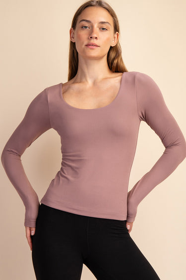 Wrap yourself in buttery bliss with this long sleeve top that's as kind to your skin as it is to the planet. Crafted from recycled polyester microfiber blended with spandex, it stretches in all directions while the double-layer design keeps you covered and confident. The fitted silhouette hugs in all the right places, and that impossibly soft fabric feels like a second skin—whether you're layering it up or letting it shine solo. Round neckline, eco-friendly vibes. Comfort that actually does good.
