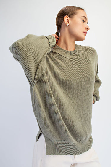 Slip into effortless comfort with this slouchy tunic sweater that's all about that relaxed vibe. The ribbed mock neck adds a touch of structure while the oversized fit lets you breathe easy, and those cheeky side vents keep things interesting. Raw seam details give it an artfully undone look that says "I woke up like this"—even if you didn't. Perfect for layering or going solo.