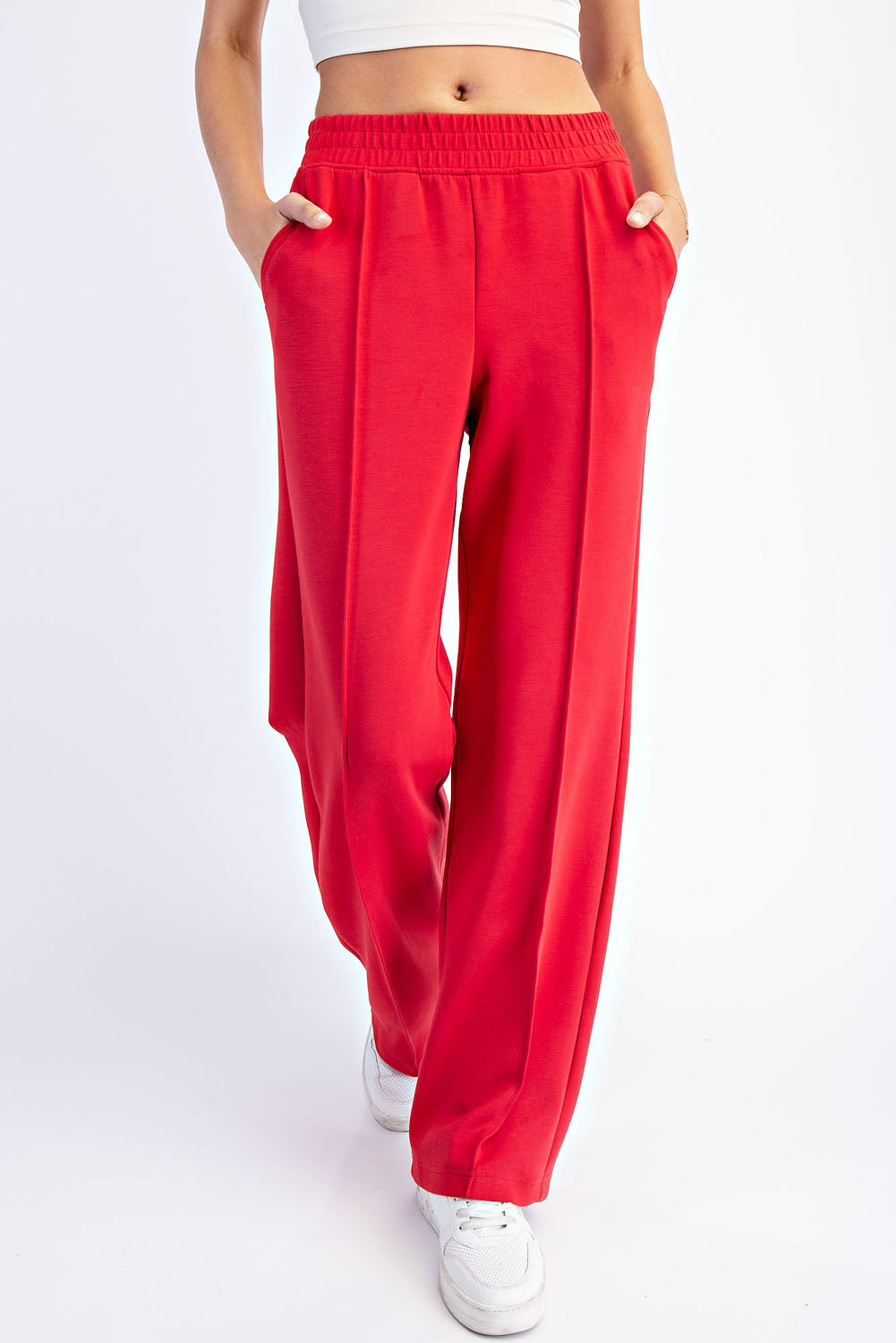 Meet your new go-to pants—crafted in sumptuous modal scuba fabric that feels as good as it looks. With 4-way stretch and a relaxed fit, they're ready for whatever your day throws at you, moving with you every step of the way. The pintuck details give them a surprisingly polished vibe, while the elastic waistband and side pockets keep things practical and fun. Lightweight, silky smooth, and endlessly versatile—these straight-leg beauties are about to become your favorite pair.
