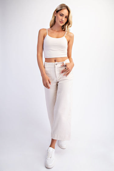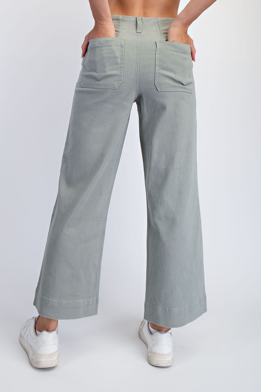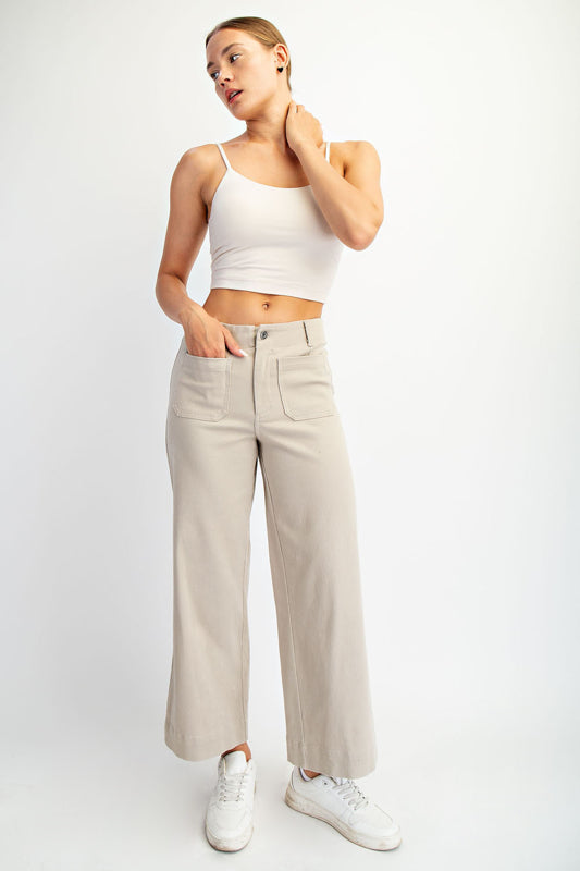 The Calla Pant is a wardrobe must-have. Cotton-spandex twill keeps its shape while moving with you, and the cropped wide-leg silhouette feels modern and relaxed. Patch pockets and button closure add character. Comfort that actually looks good.